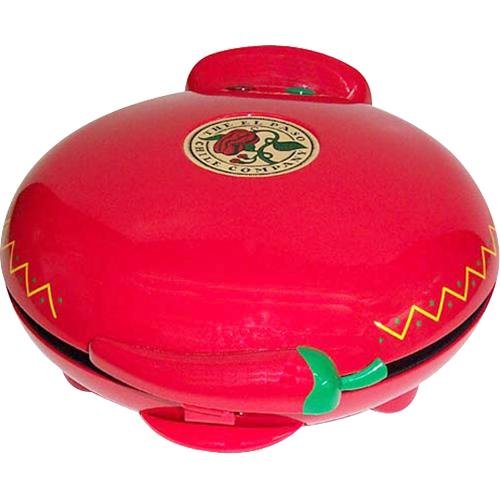 Enjoy restaurant-style Tex-Mex at home with this no-fuss quesadilla maker. Features red-and-orange design with chili pepper handle adds festivity to cooking, on/off and ready light and built-in drip reservoir, non-stick plates and El Paso Chile recipes. 11''H x 24.5''W x 28D''.